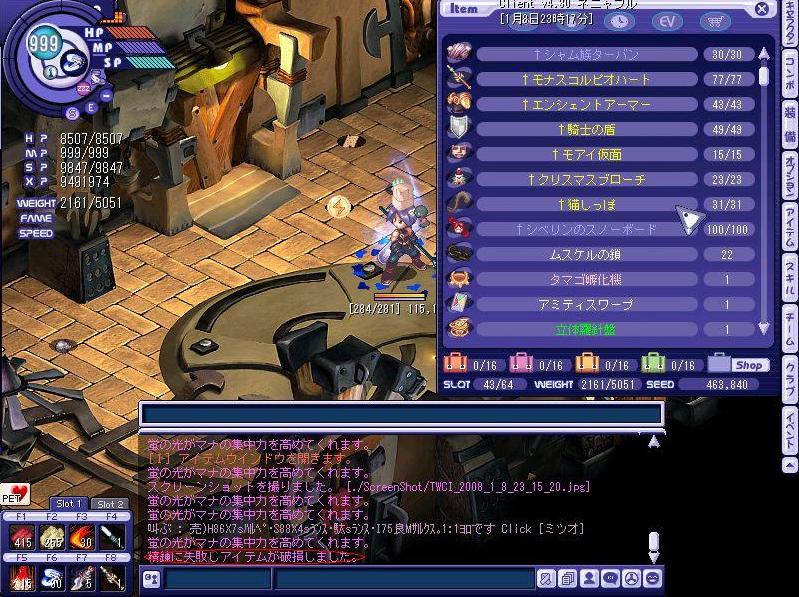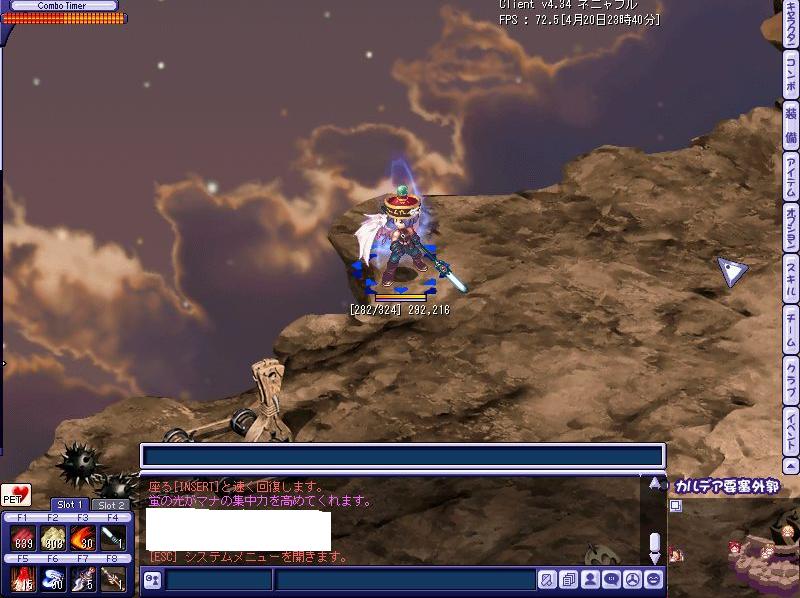 自分、重くてカクカクする時や狩りに集中したい時は必ずと言っていいほどチャット欄を初めクイックスロット等の表示物を消してプレイしています。こうすると自分のPC環境でもかなり快適にプレイ出来るのです。