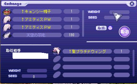 APWx2.羽毛190枚.未合成キョンシー帽子にて交渉成立!!