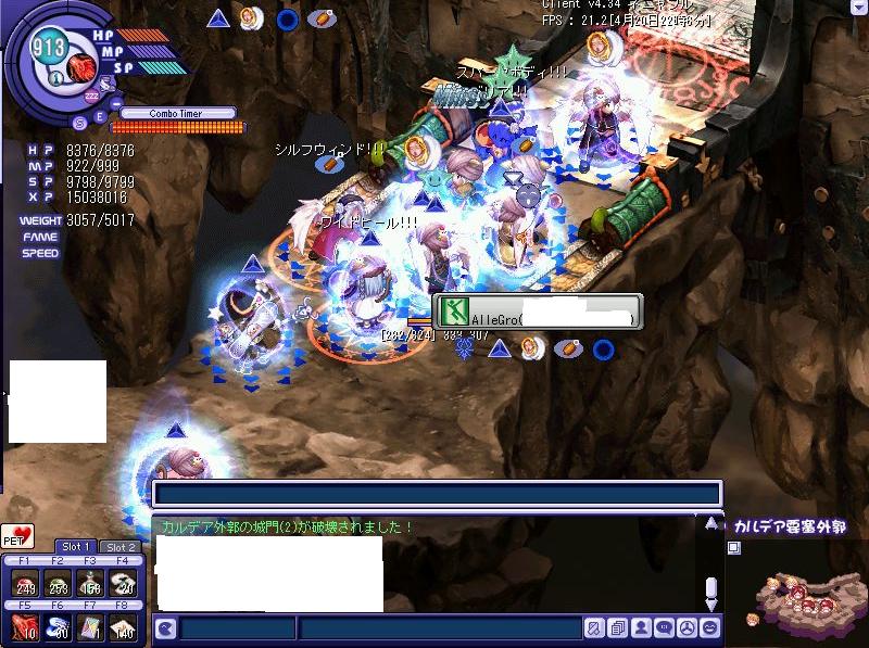 残り9分??(この時点で一度エラー落ちしており時計の表示が消え、正確な時間がわかっておりません&自分のPC時計は2分程度TW時間とずれております;)ようやく大結界石が出現!!!