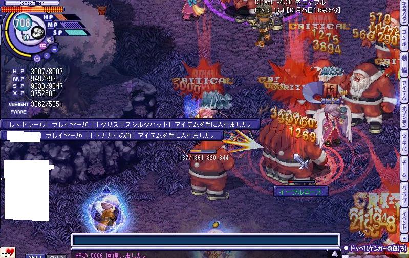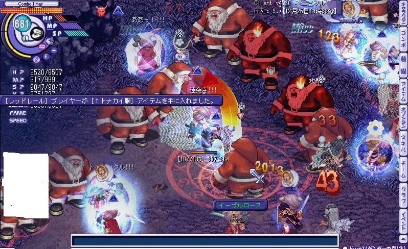 それが全くの見当違い;;サンタやトナカイが出るわ出るわ;これなら狙い撃ちされない限り生命のかけらで何とかなるかも!!と範囲を乱れうち!