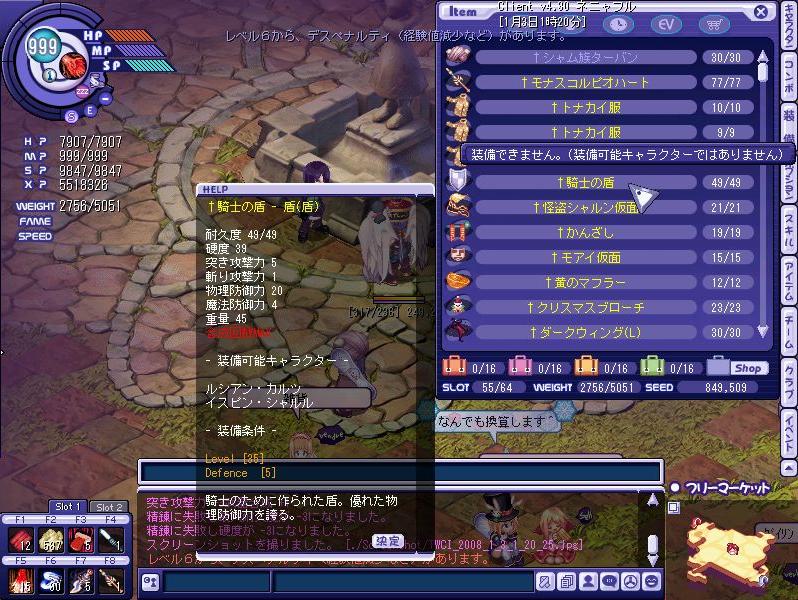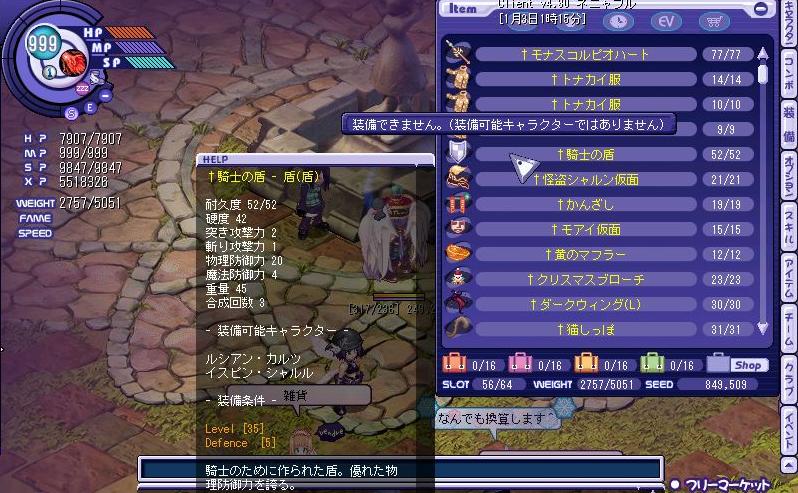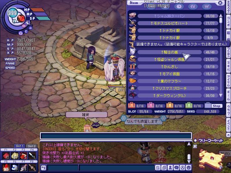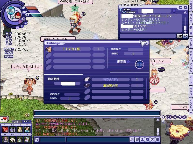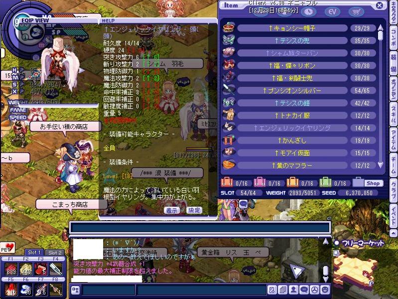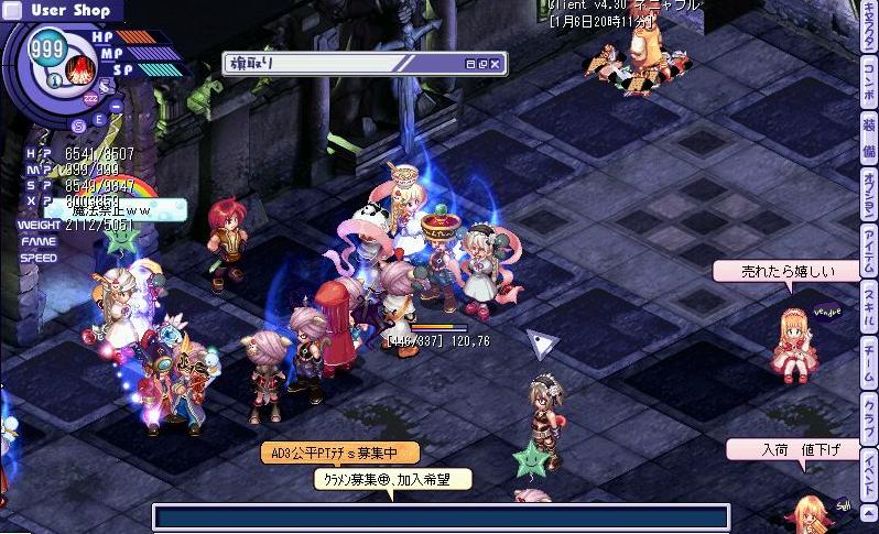 先日書いたとおり最近はフリマにて露店を出し近場で狩り Or PCをつけたままスタオ1しながら交渉待ちと言った感じの毎日です(この寝落ち率5割を超えるであろう状態でエルラはいけません;)