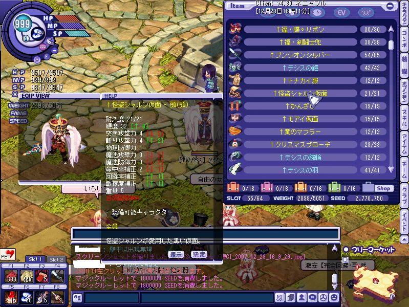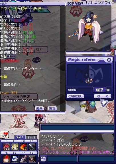龍泉郷にて天使耳を購入し・・インクリ投入!これがなんと一回目にして成功!そして・・・MR一回で準MAXになったのでイベで出た精錬を投入・・