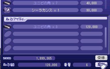 そして先日…以前書いた通り、現時点で頭装備でs.h補正のある装備がテシス護符しかなく;遺跡での低火力ぶりを少しでも解消すべくフリマを周っていると・・・・s4.h2のシャルンが40mで売っているのを発見!クラメンsに聞いたところマジックルーレットは一回につき1.8mかかるとの事なのでs3.h3で39mの物もありましたがこちらの露店主さんに交渉をしてみることに…