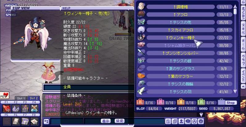 いやーーーーー!!久々のモアイ仮面wwこいつを見せ売りしてしまった時からネタ装備がアフロ位しかなく物足りなかったのですが・・今度は間違って店売りしないようにしないとな;
