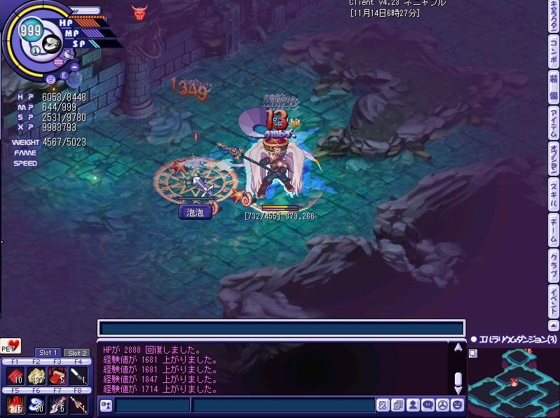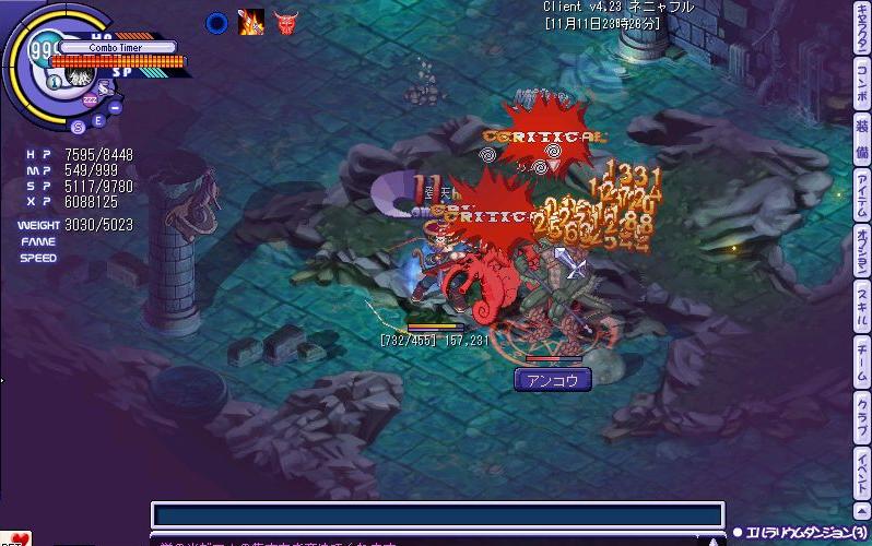 そんな中で自分が一番困ったのが狩場でF5キーを押すとIMEパッドが出てきてそれをいちいち消さないとクライアントが開かず…その間にバシバシ攻撃を喰らい昇天;;;(ちなみにF5キーは紅龍登天が設定されています)一応スロットを組み直しF5を使わないようにしたのですが…慣れってやつですね;ついついF5を押してしまいそのつどあせってIMEパッド消して即回復の繰り返しで…これが治るまではエルラDでの狩りは厳しいかもしれません;