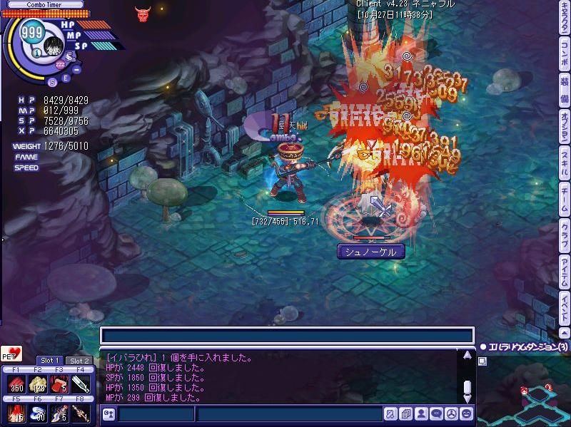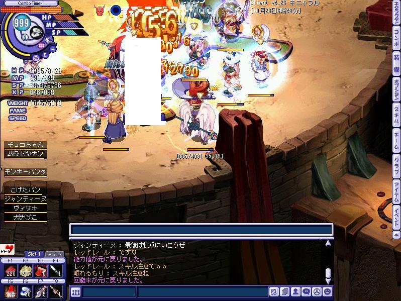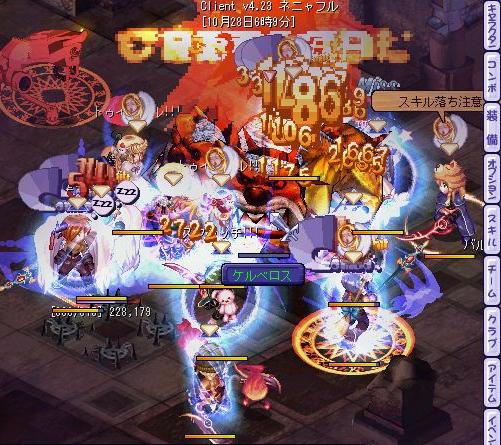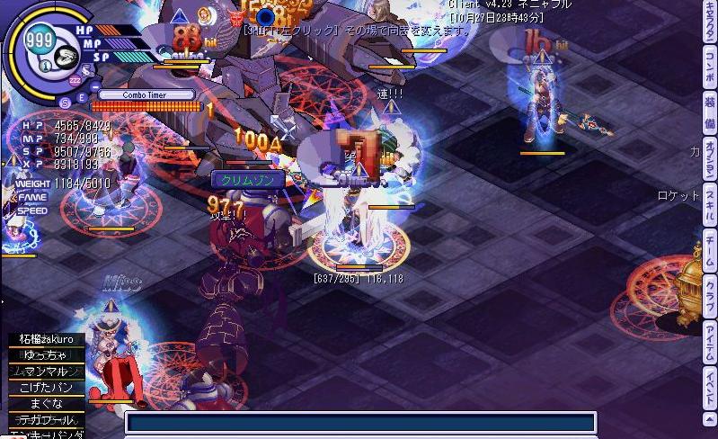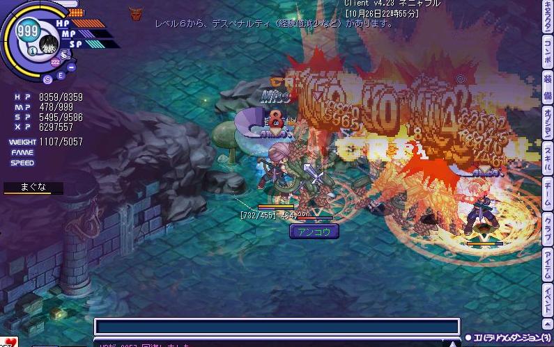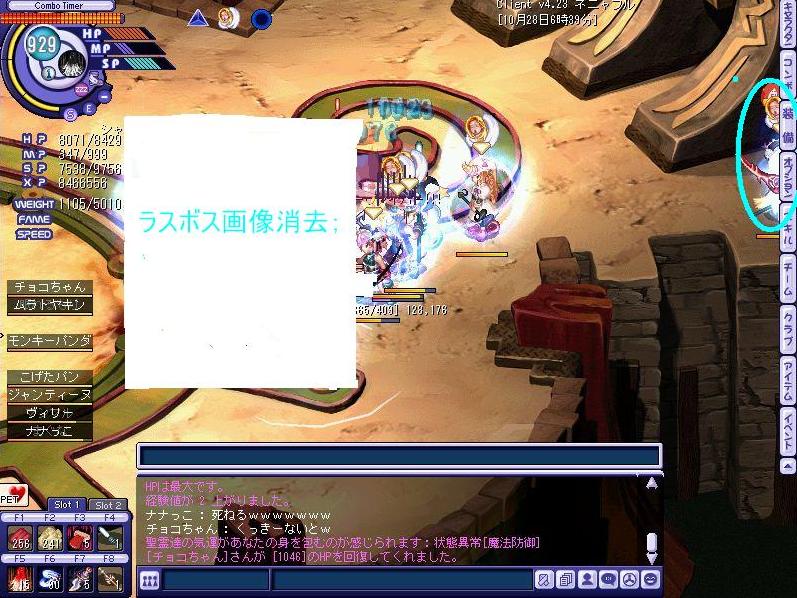 悲劇は繰り返す…みんなが無事を確認しあっていると、一人姿が見当たらない…チーム欄で見ると座標はここの階になっているのに、、、、まさかと思いながらチーム欄をもう一度見たその瞬間、、、、ログアウトの文字が……その時場の空気が凍りついたのは言うまでも無く、、、、、、、ネクソンさん、スキル落ち何とかしてくれませんか?;;以前の虚無感が頭の中を駆け巡り…なんともいたたまれない気持ちを持ったまま残りのメンバーでラスボス戦へ行くことに、、、、
