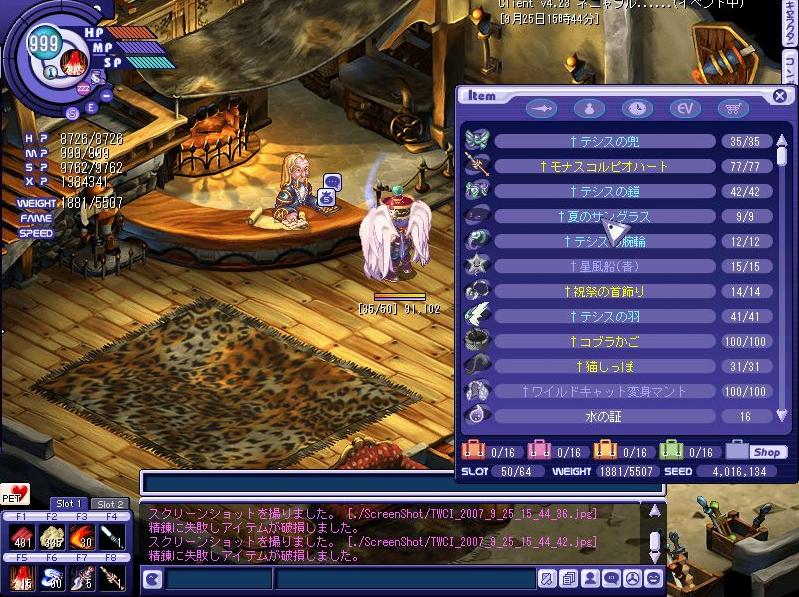以前から、聖PWへ挑戦しようと羽毛を集めていた訳なんですが、120枚程度集まった現時点で売れる物がそこを尽いてしまい、、露店に出ていない状況も相成って現状では無理な状態;