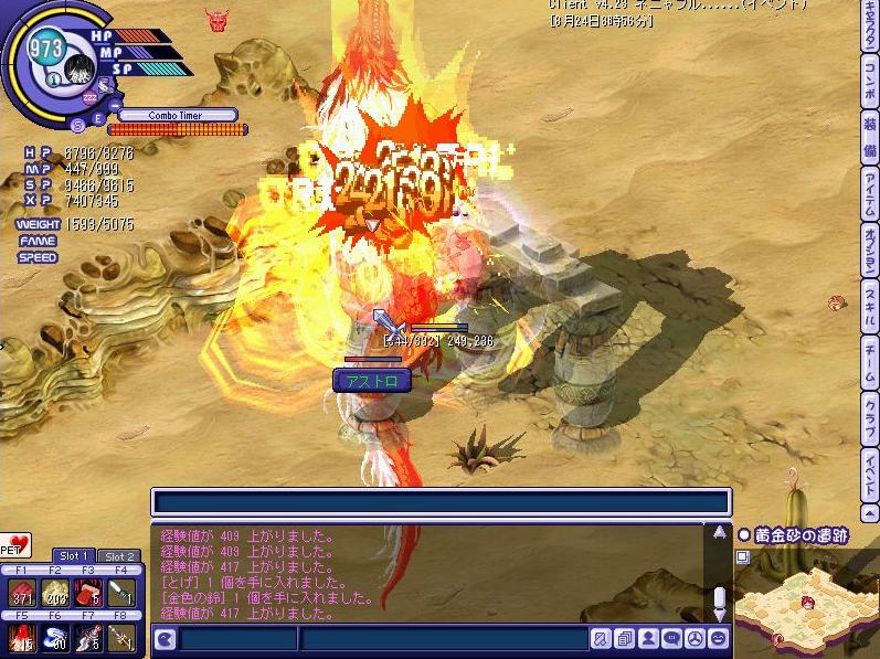 極寒3はMOBを倒すのに3セットかかって500ちょい。ここだと確実に2セットで倒せて400ちょい…質よりも量でしか効率の出せない現状では黄金砂遺跡はありがたい狩場です