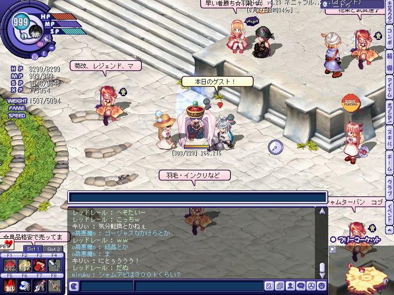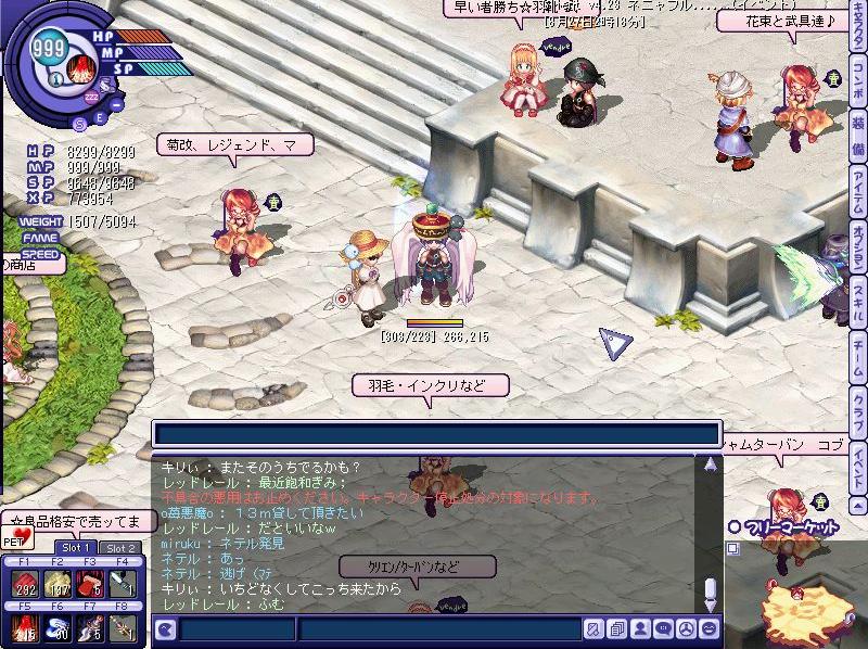 今日もINしたものの狩りに行く気にはならず、ナルフリにてぶらぶらしていたところ…