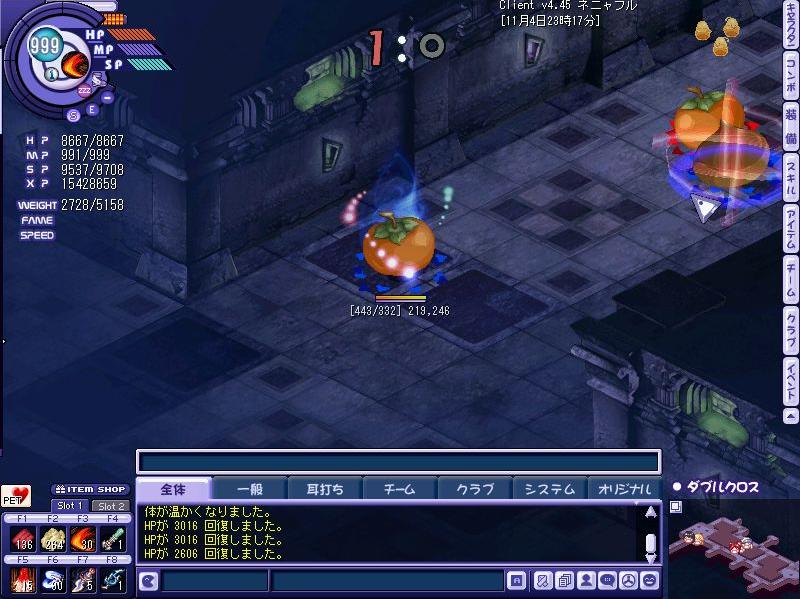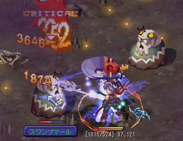 んー;予想はしていましたがやはり敵が集まりにくいですね;ADでバシバシ範囲撃ちながらレベル上げが出来た頃に比べるとかなり物足りない気がしました;