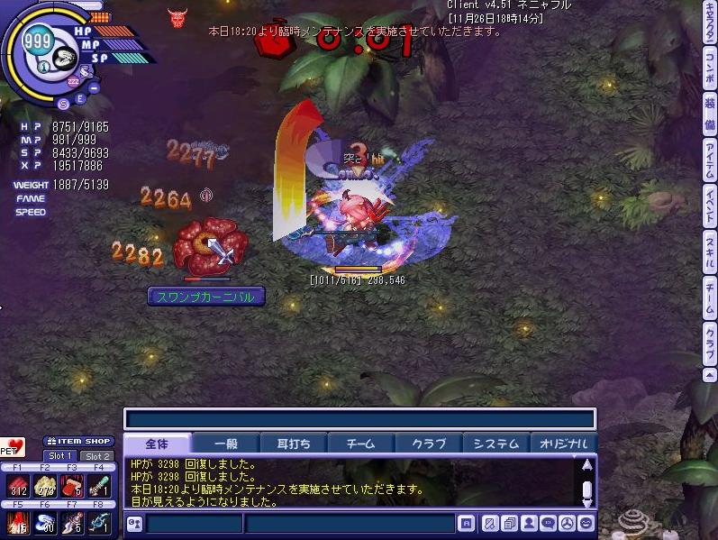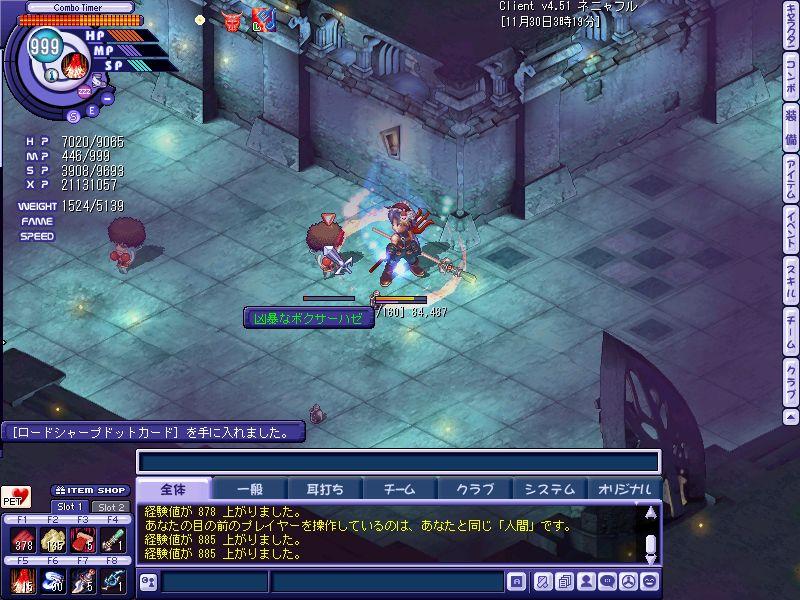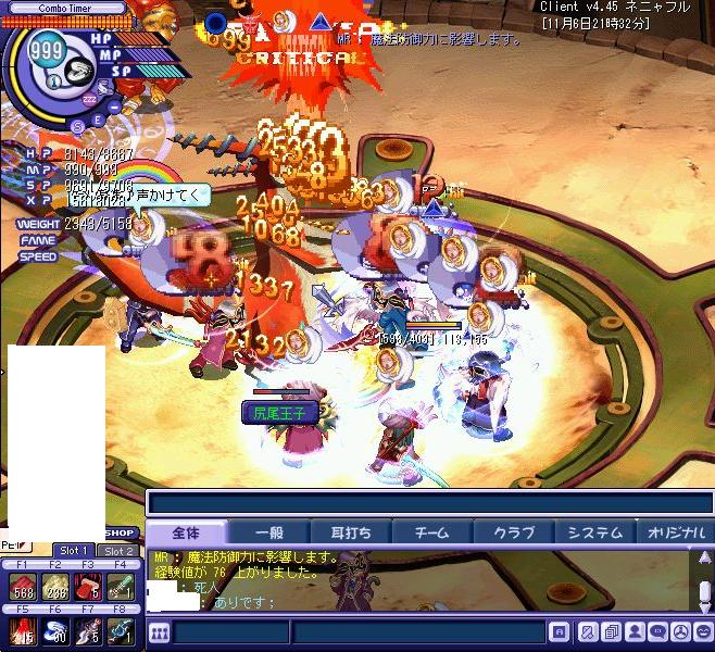 まったり遊んでいます。カンストをして一時は狩りをする機会が減り、他キャラのPK性能ばかりに目が行きそれに惑わされたり、〇〇〇〇にシベなんぞカンストしようがPK………wwwwみたいなことを言われへこんだりもしましたが…