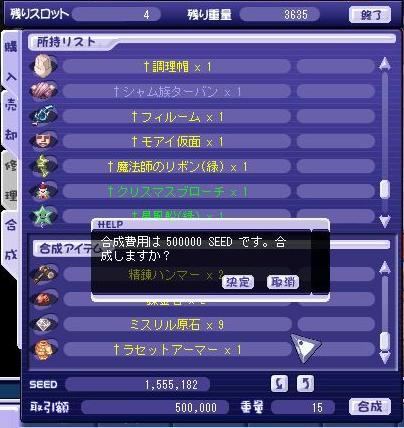 錬金石は175棒を売ったり以前の青海賊売却時に手に入れたものがあるので問題は精錬ハンマー…