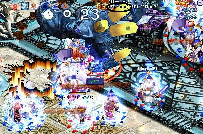 お相手が団体で列挙しつつギガスをだして石に速攻をかけて来ました。作戦ではギガス登場時はギガス無視で石狙いを排除するということになっていたのですが…狙ったかのように自分の真後ろにギガスが現れ…重くてとても動けず…ギガスを排除しないとどうにもなりそうも無かったので…